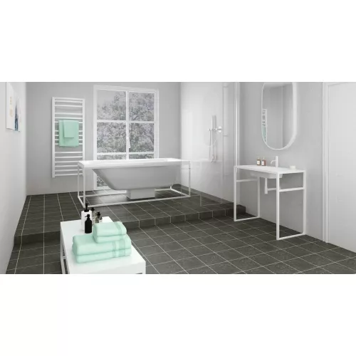 Lithium is a soft, silvery-white metal, helping to create lighter, brighter bathrooms with a greater sense of space. It’s a more interesting, more alluring alternative to a plain white wall, simple and classic, but with some added textures
