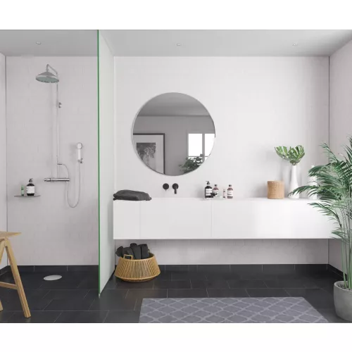 White satin wall panels work well with absolutely everything! And now available in this super trendy hexagonal tile effect. Product code: 2094-M71.