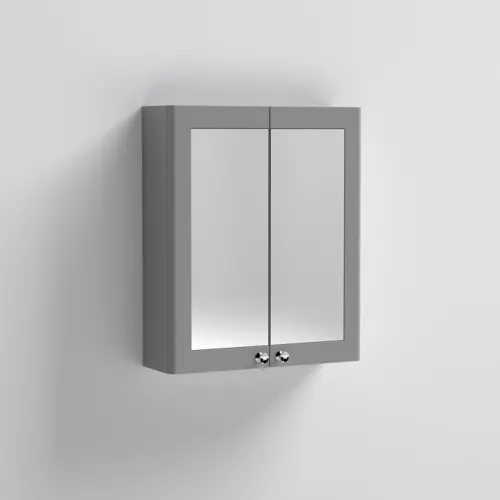 APS51433 Deco Compact Wall Hung 1 Door Vanity Basin Unit & Ceramic Basin, 400mm - Satin Grey Grey