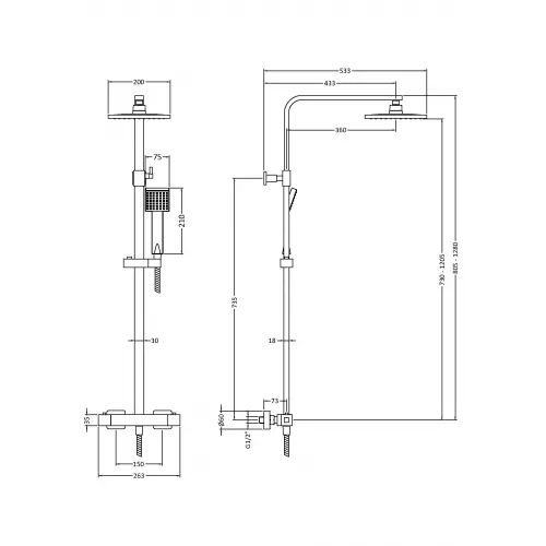 APS8556 Twin Thermostatic Shower Valve & Rigid Riser Chrome/White