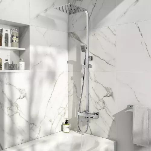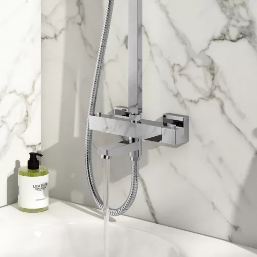 APS51260 Block Square Rigid Riser Shower with Bath Filler Chrome